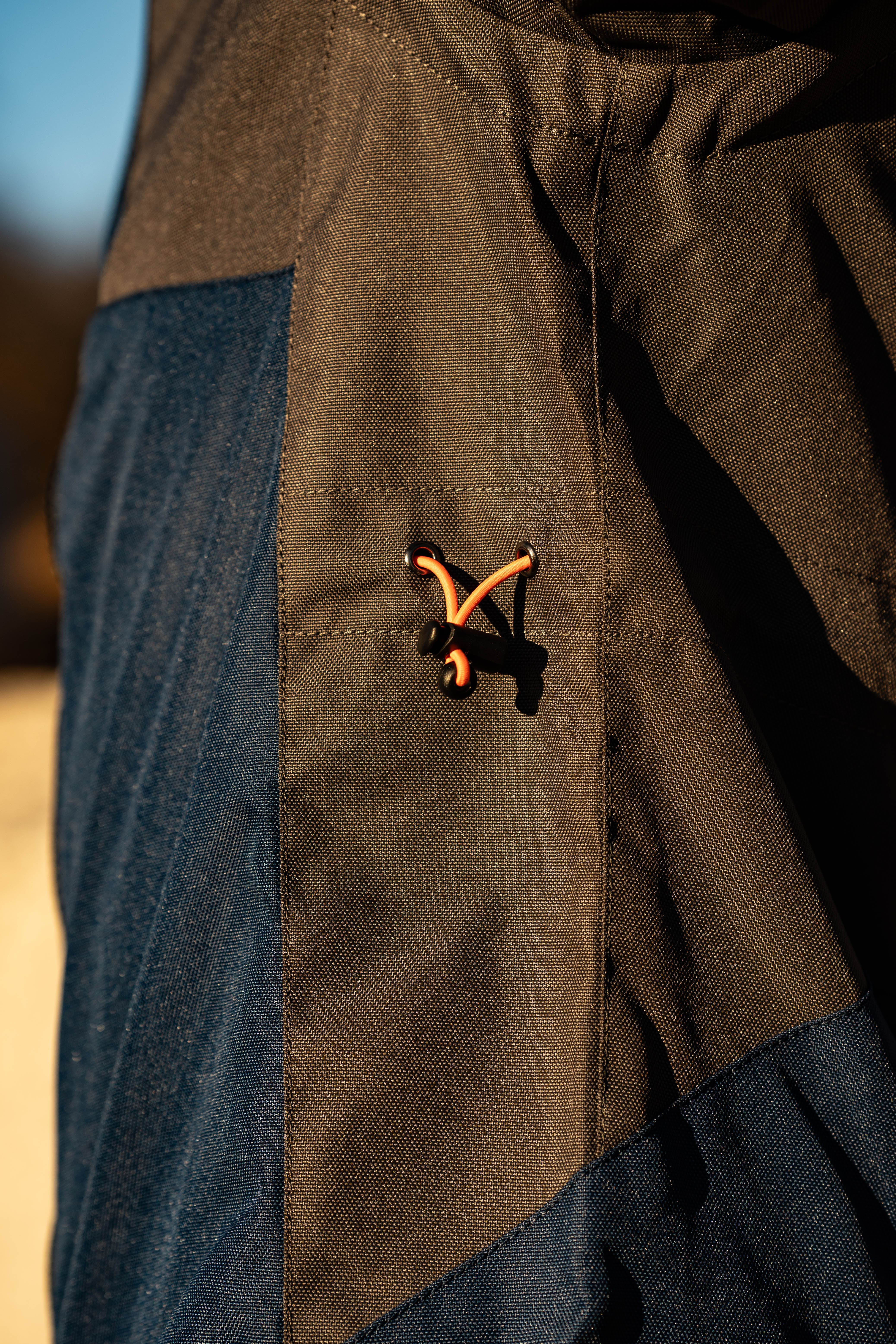 - Adjustable waist with drawstring, adjustments on the bottom with Velcro.