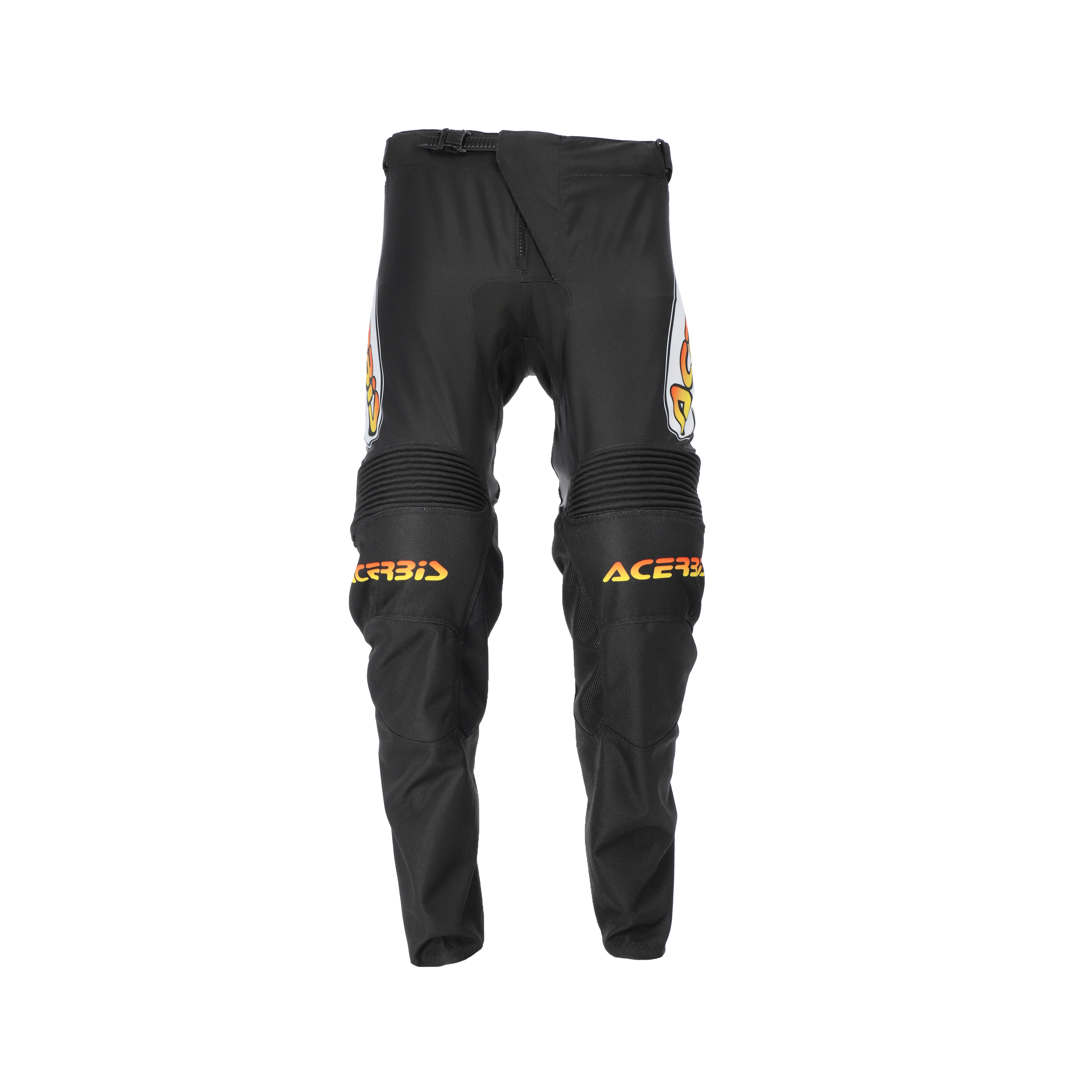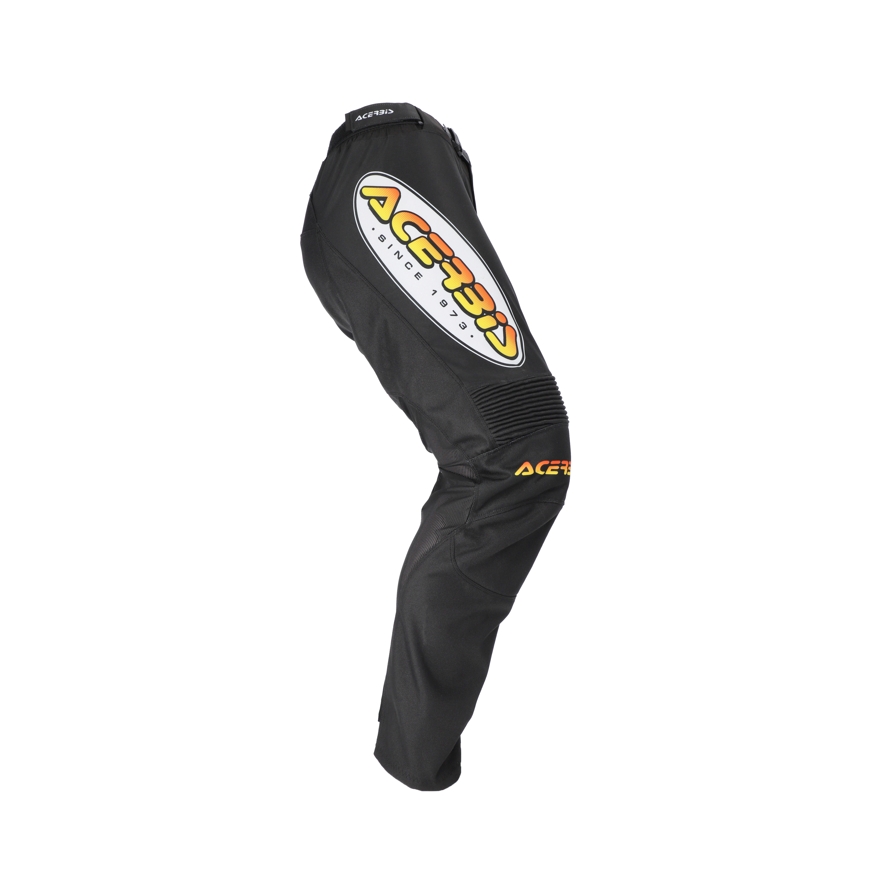 Polyester enduro pants with stretch panels.
