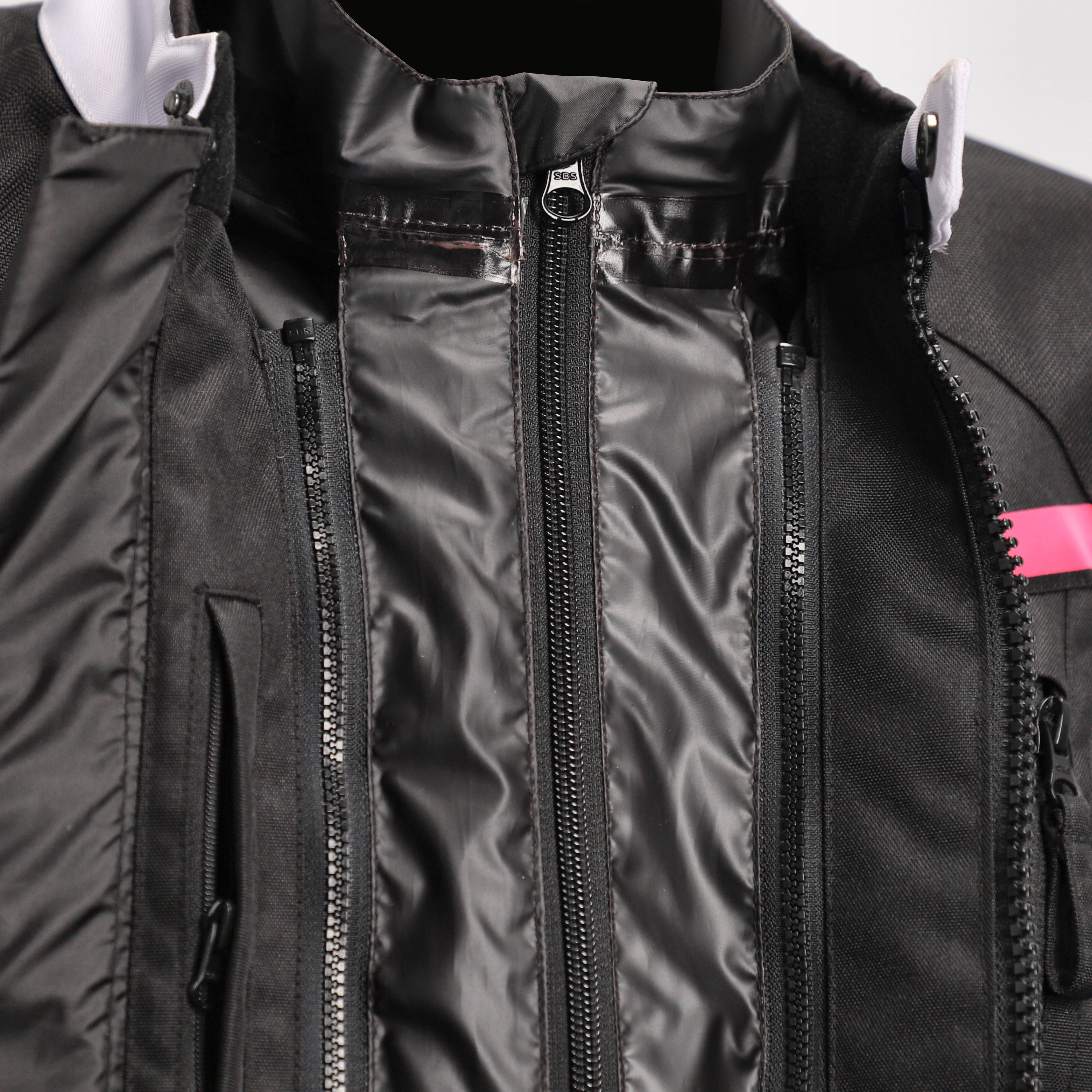 2 zip pockets outside and 1 zip pocket inside the jacket waterproof totally taped