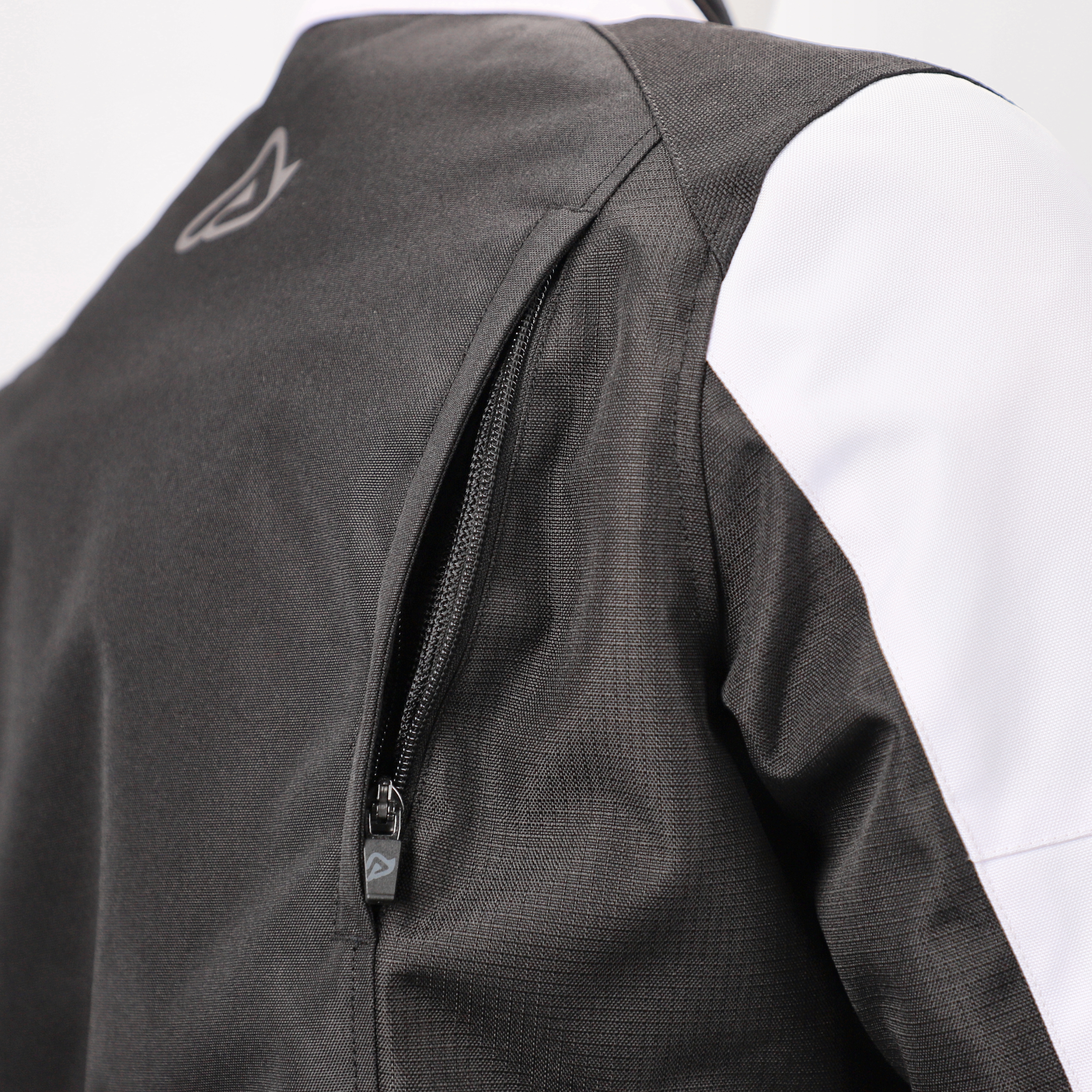 Chest, sleeve and back ventilations in mesh openable with zip