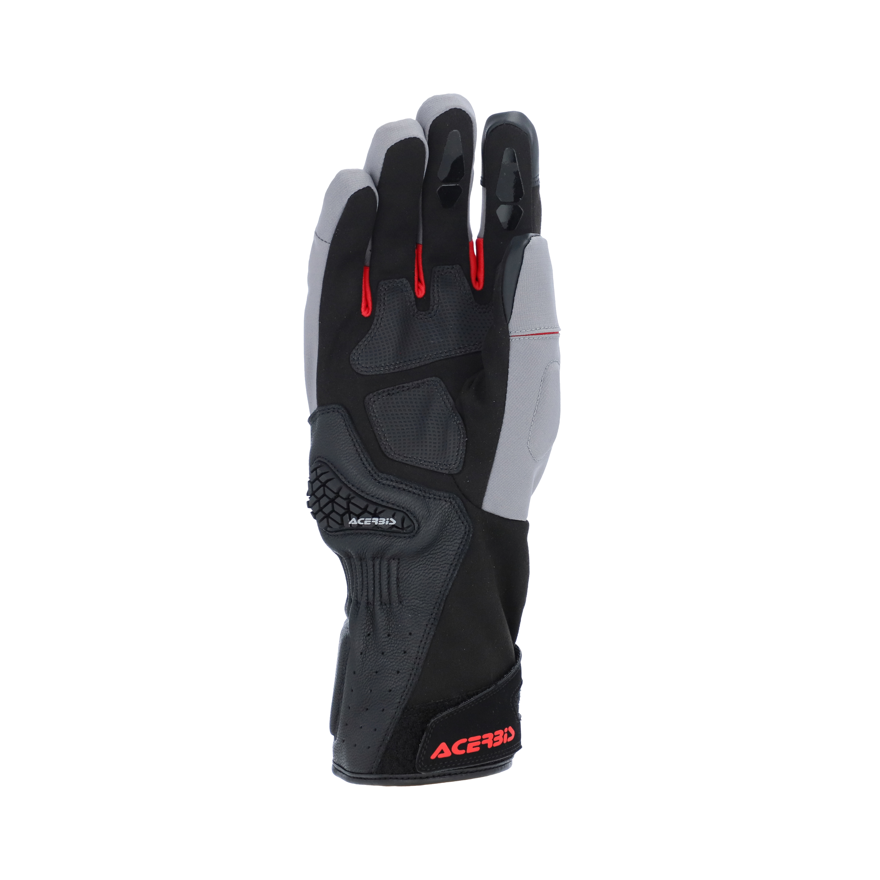 These long, pre-curved sports gloves are designed for road and off-road motorcycle use, crafted from a combination of technical fabrics, synthetic leather, and goatskin. They are waterproof and suitable for year-round use across all seasons. Key features include: