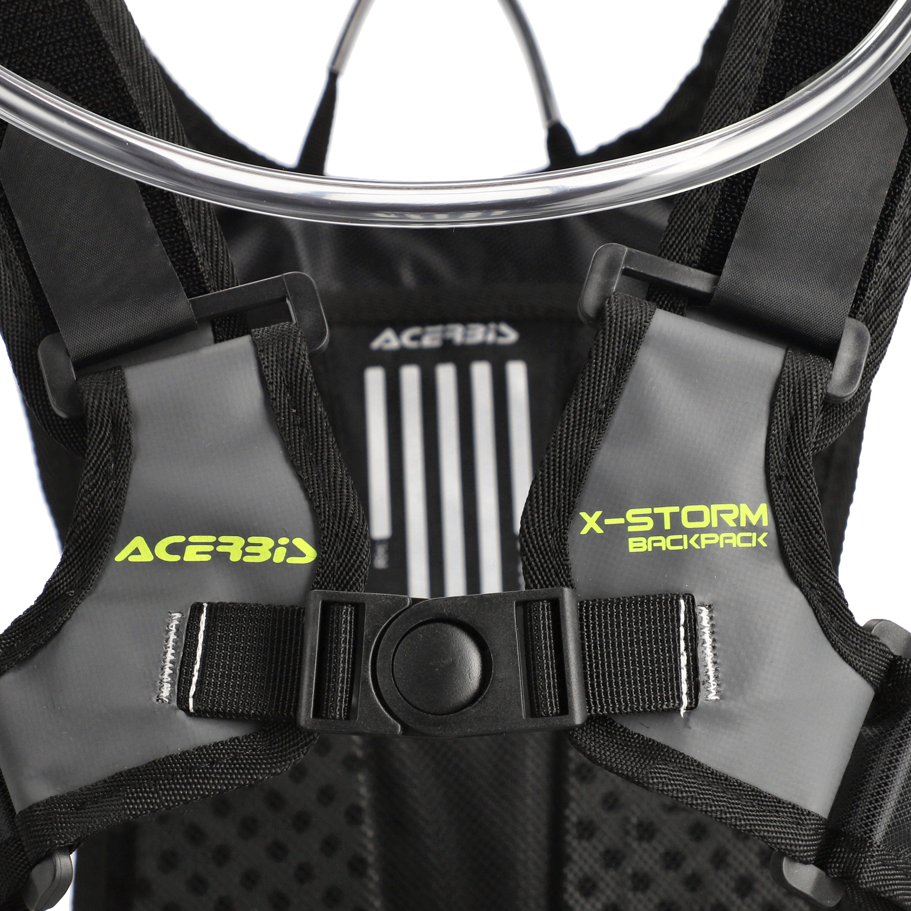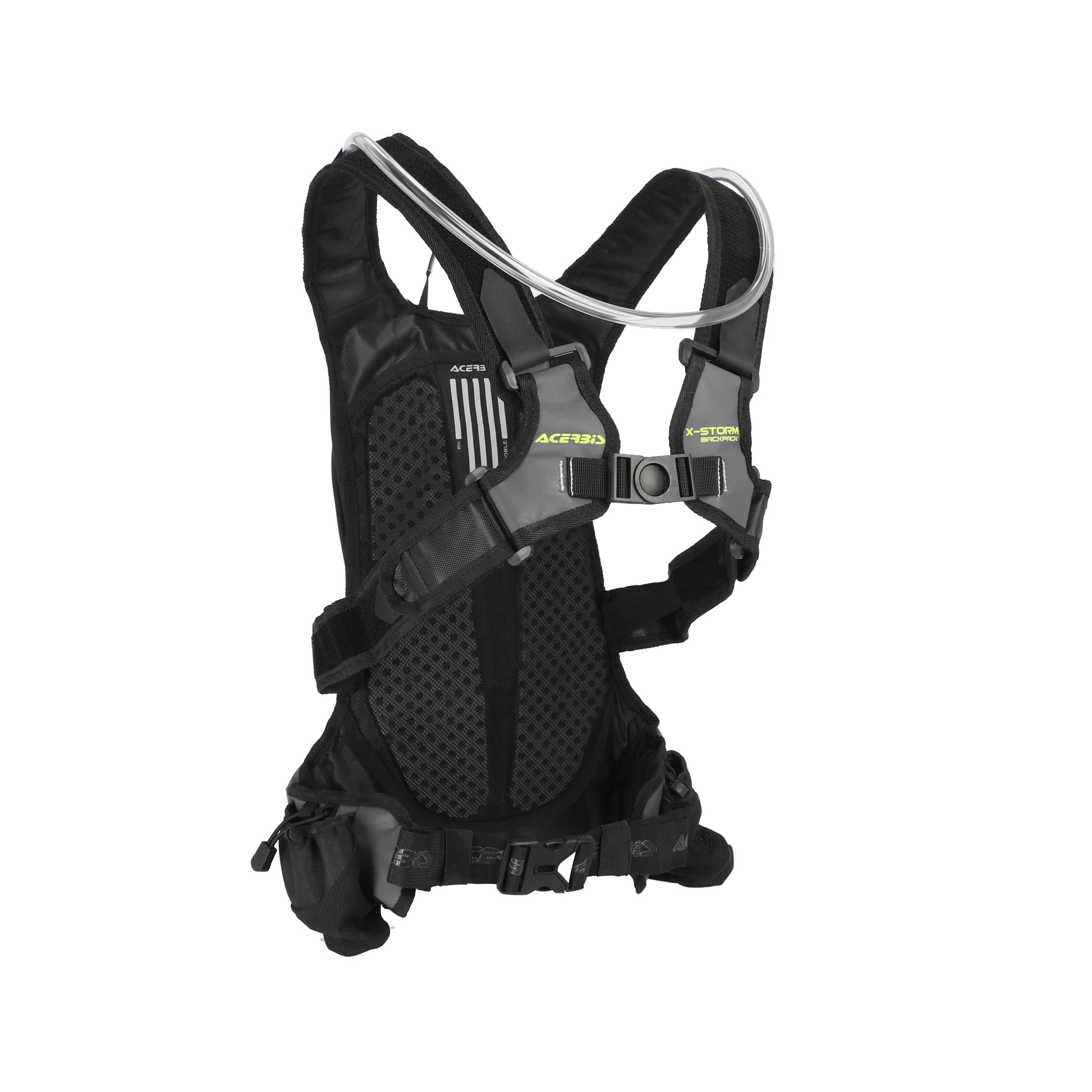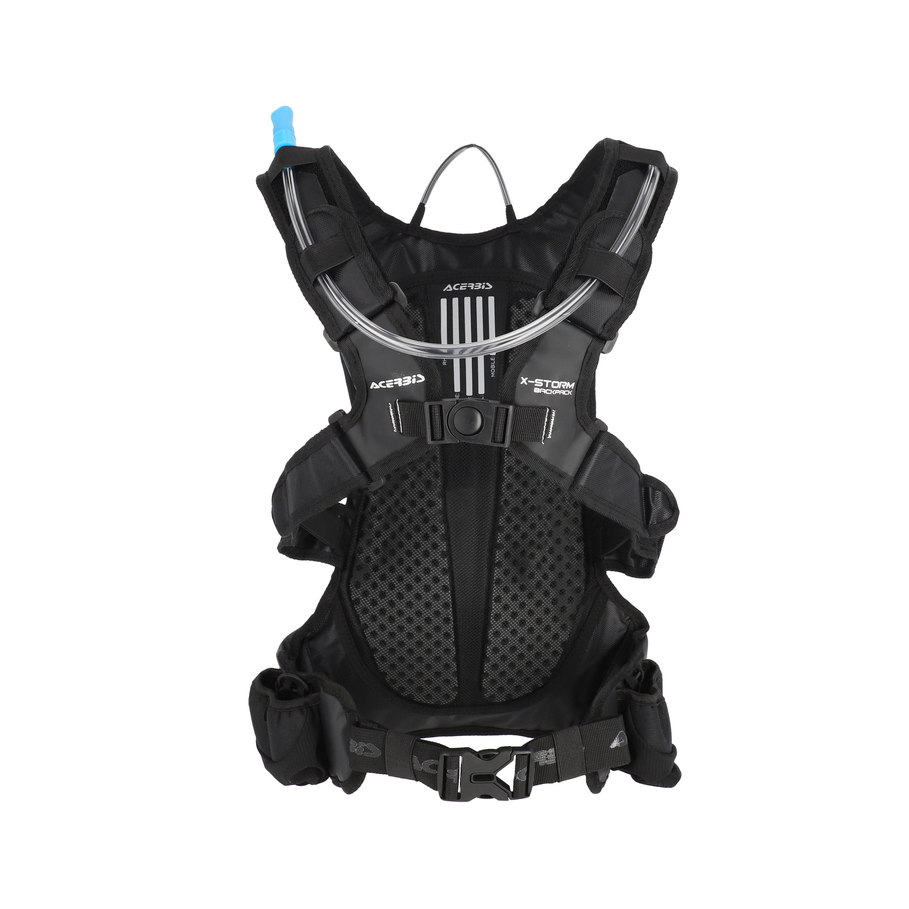 Innovative "X" Closure System, with central quick release and 4 Velcro adjustments, cancels the swinging effect and simultaneously distributes the pressure of the shoulder straps evenly, on the chest and not on the shoulders, ensuring a free and unencumbered ride. Additional adjustment at the waist.