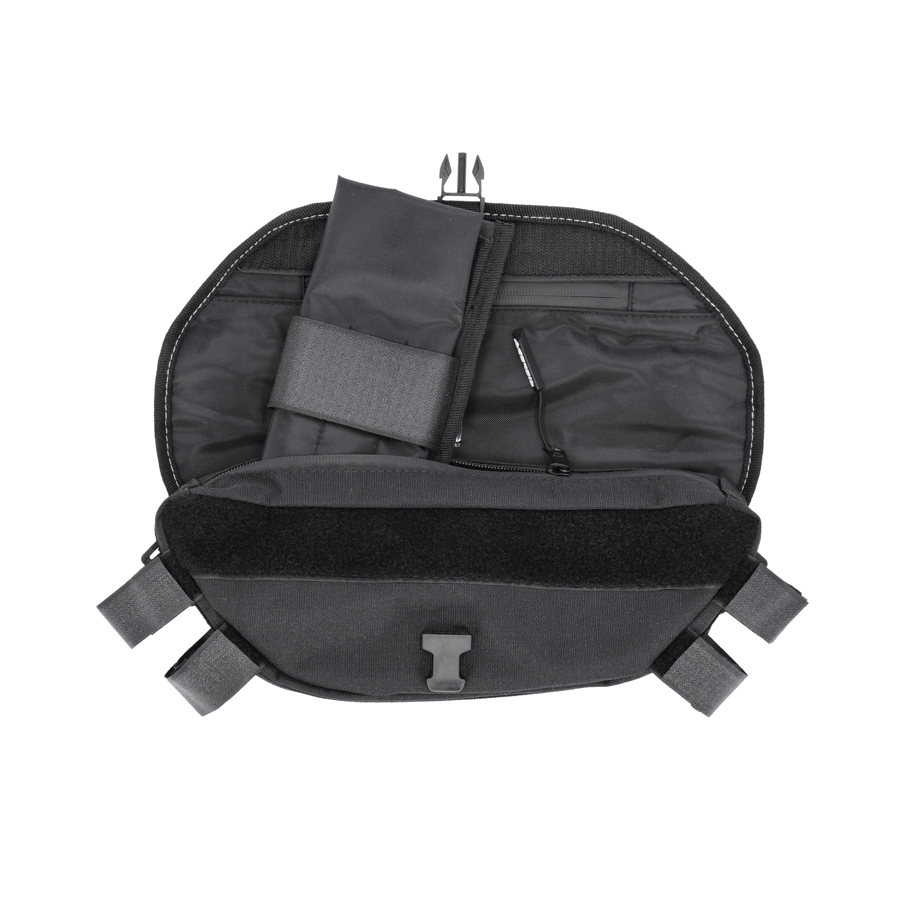 - Main compartment has closure by a water-repellent and dirt-resistant zipper. Inside is a removable tool bag.