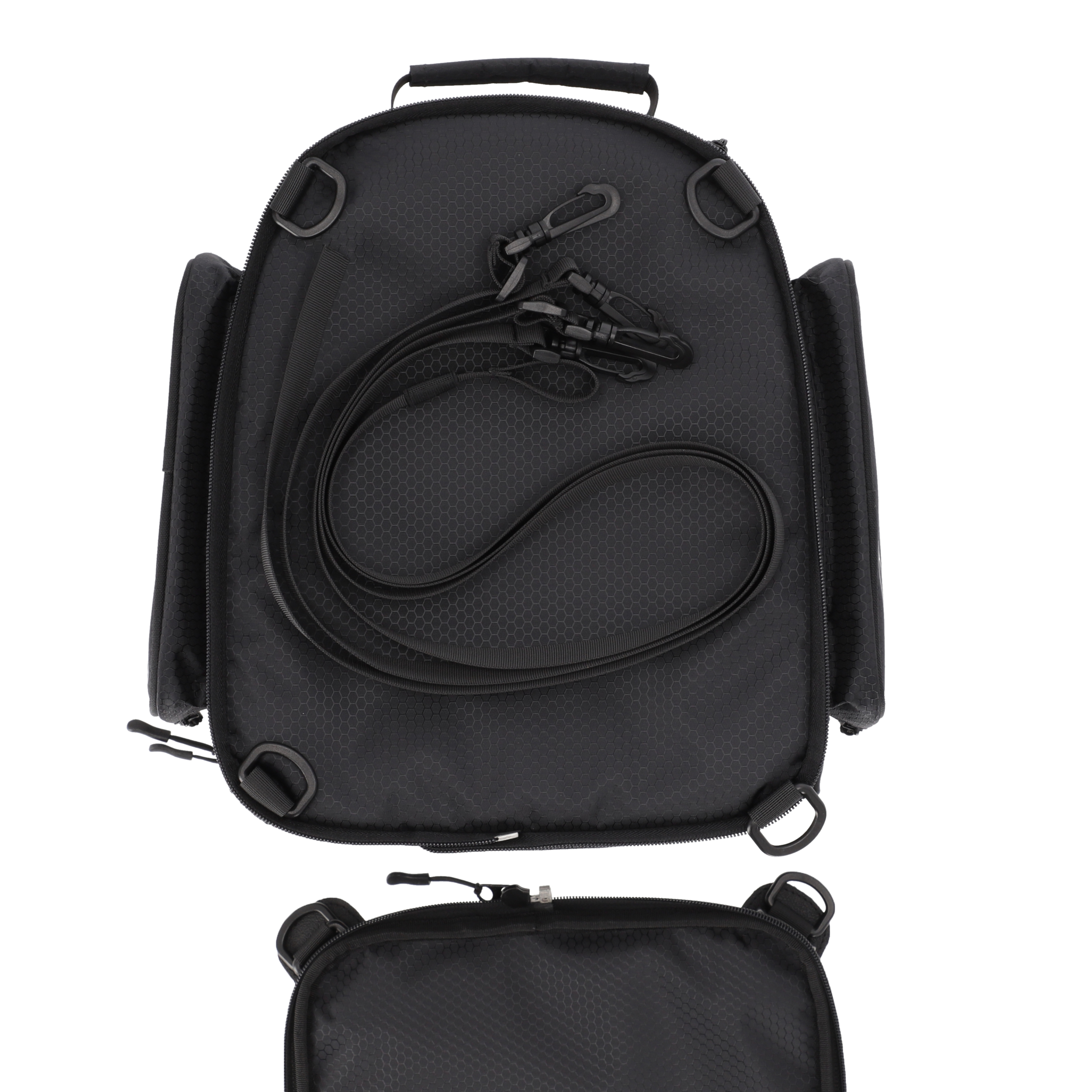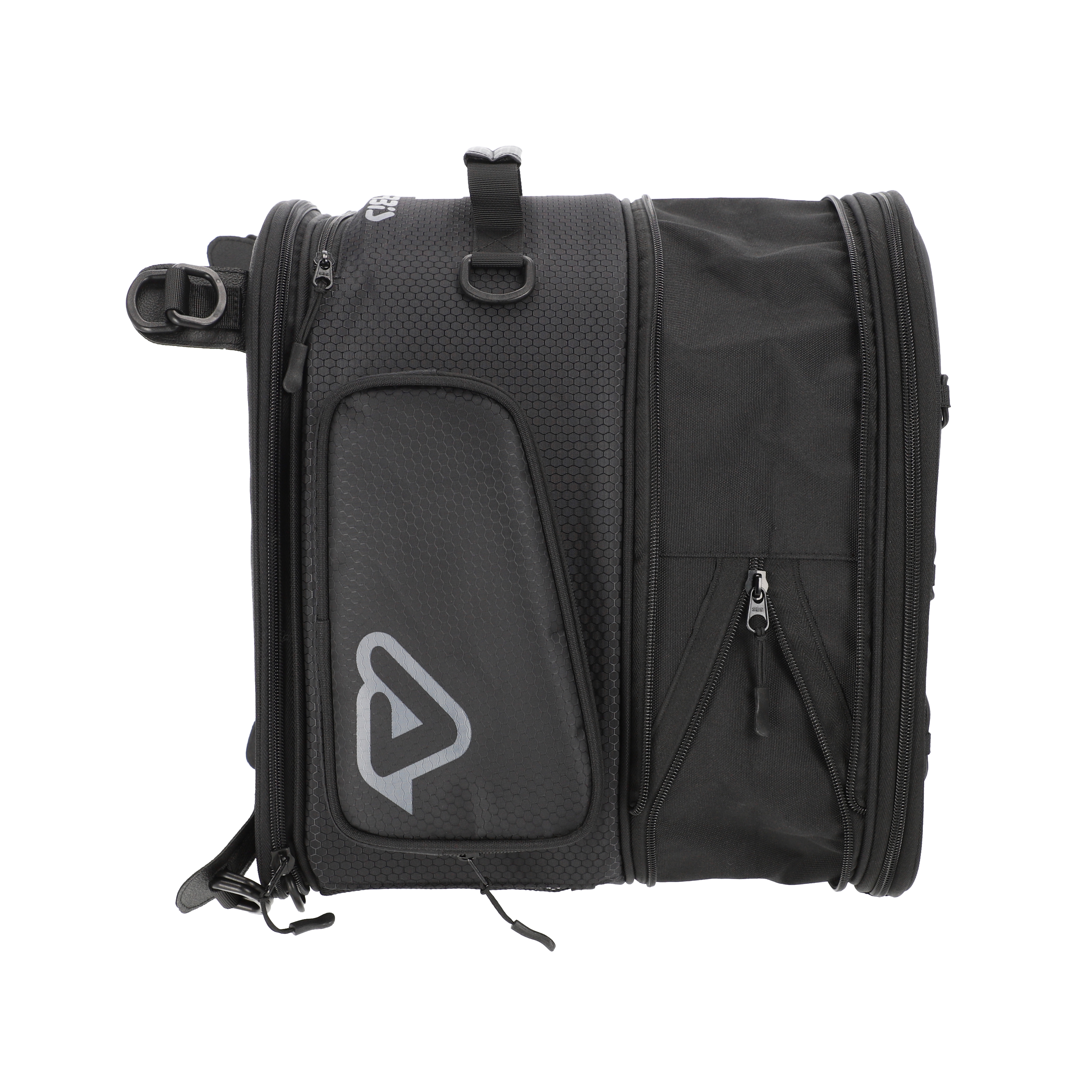 - Two zippered external side pockets.